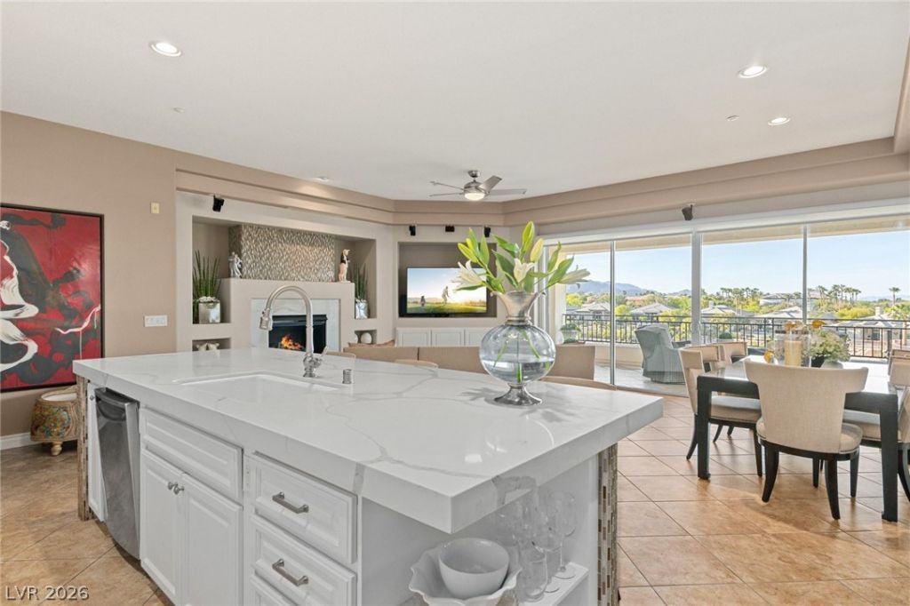 Wake each morning to serene golf course views from your expansive covered patio?an inviting setting for sunrise coffee or evening cocktails as the sun melts behind the mountains. This beautifully refined 3-BR residence spans 2,042 s/ft and offers 2 full baths and 1 half bath, thoughtfully designed to live like a single-story. Privately positioned on the 2nd floor, the home features direct elevator access that opens into the residence, creating a sense of arrival and exclusivity. The open-concept living space is both elegant and inviting, centered around a fireplace that adds warmth and ambiance. Generous living areas, well-proportioned bedrooms, and seamless indoor-outdoor flow make this home ideal for both relaxed everyday living and effortless entertaining. A spacious 2-car garage provides added convenience. Located in the heart of Summerlin, this residence offers close proximity to shopping and dining?delivering a refined balance of tranquility, accessibility, and elevated living.